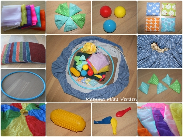 SvarSletJeg har selv undervist i forældrebarn gymnastik i mange år. Vi brugte mange tilsvarende ting i din pose. Men der er dog en ting du måske har lyst til at putte i også.