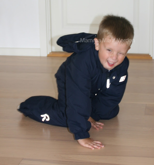 Efterår er også lig med flyerdragt til August her i huset. Vi har indtil nu mest haft Småfolk, men sidste år syntes vi han var blevet for stor til at have en æbledragt, så sidste år fik vi Lego skitøj til ham og havde så en billigere flyverdragt. Den holdt dog kun lige knap sæsonen ud, og har nu huller mange steder. Så i år skulle vi finde en ny til ham. Derfor var det jo super fedt, at Reima tilbød os at teste deres nye model "Reimatec Flyverdragt Nat".